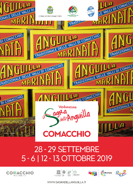 Ma dove si poteva fare una sagra dell’anguilla se non a Comacchio? Dal 28 settembre al 13 ottobre 2019 la "festa” del pesce principe del Delta del Po con degustazione, come affermano gli organizzatori, di "prelibati piatti di pesce di mare e di valle”.